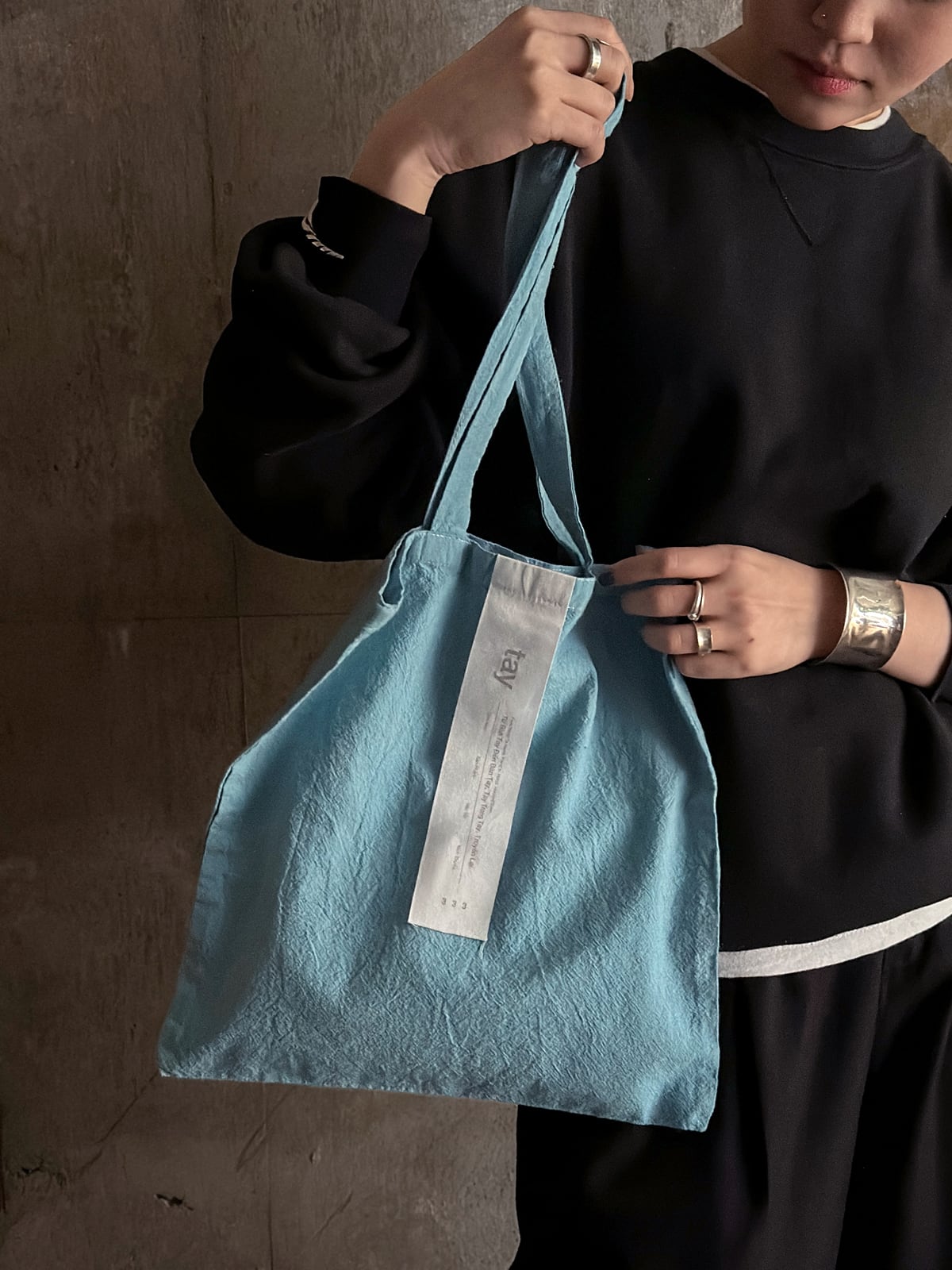 ボタニカルダイで鮮やかに染め上げたtayオリジナルのエコバッグ。