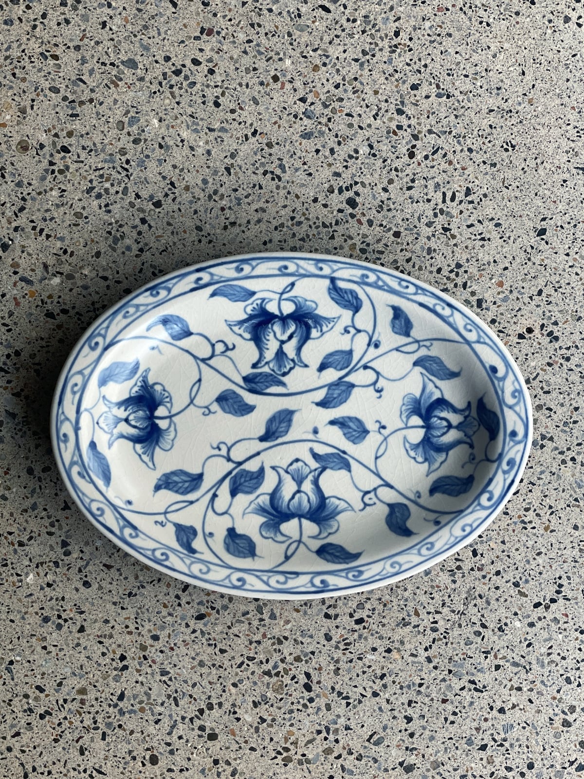 「バッチャン焼き」の花の絵付けのオーバル皿です。