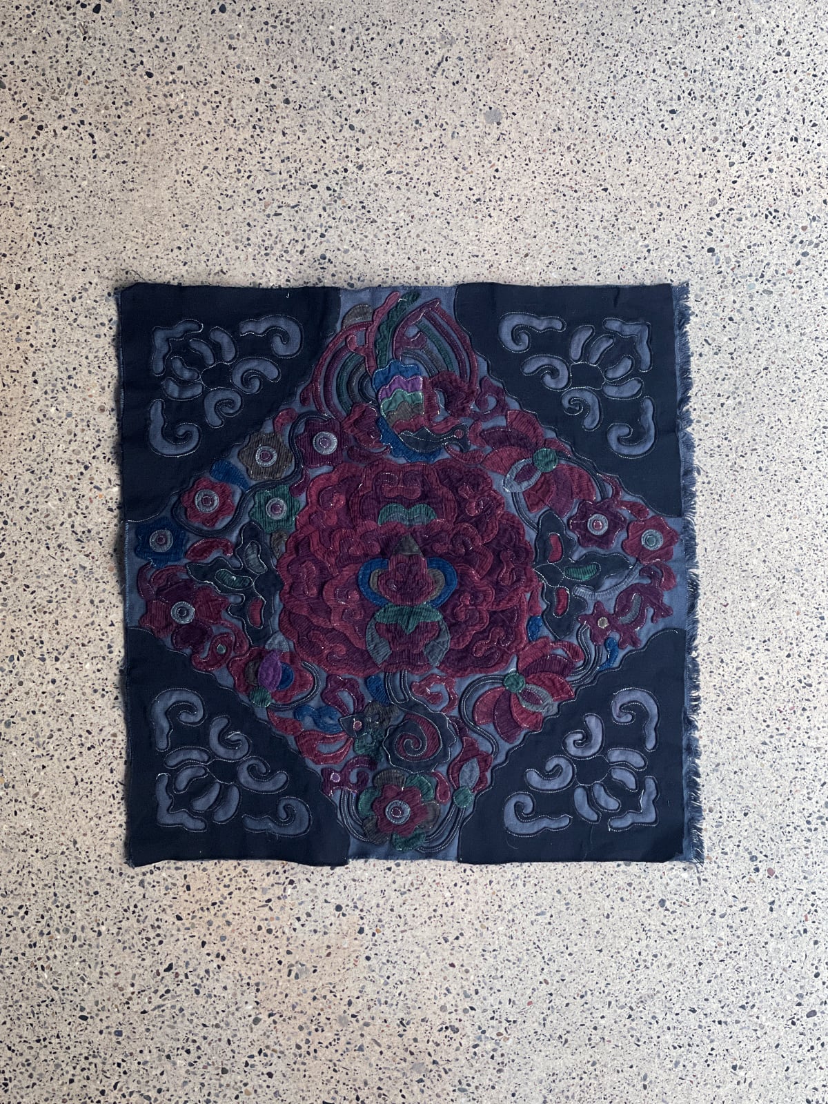 中国・ミャオ族が作っているヴィンテージのファブリックにtay originalで黒染めを施しました。