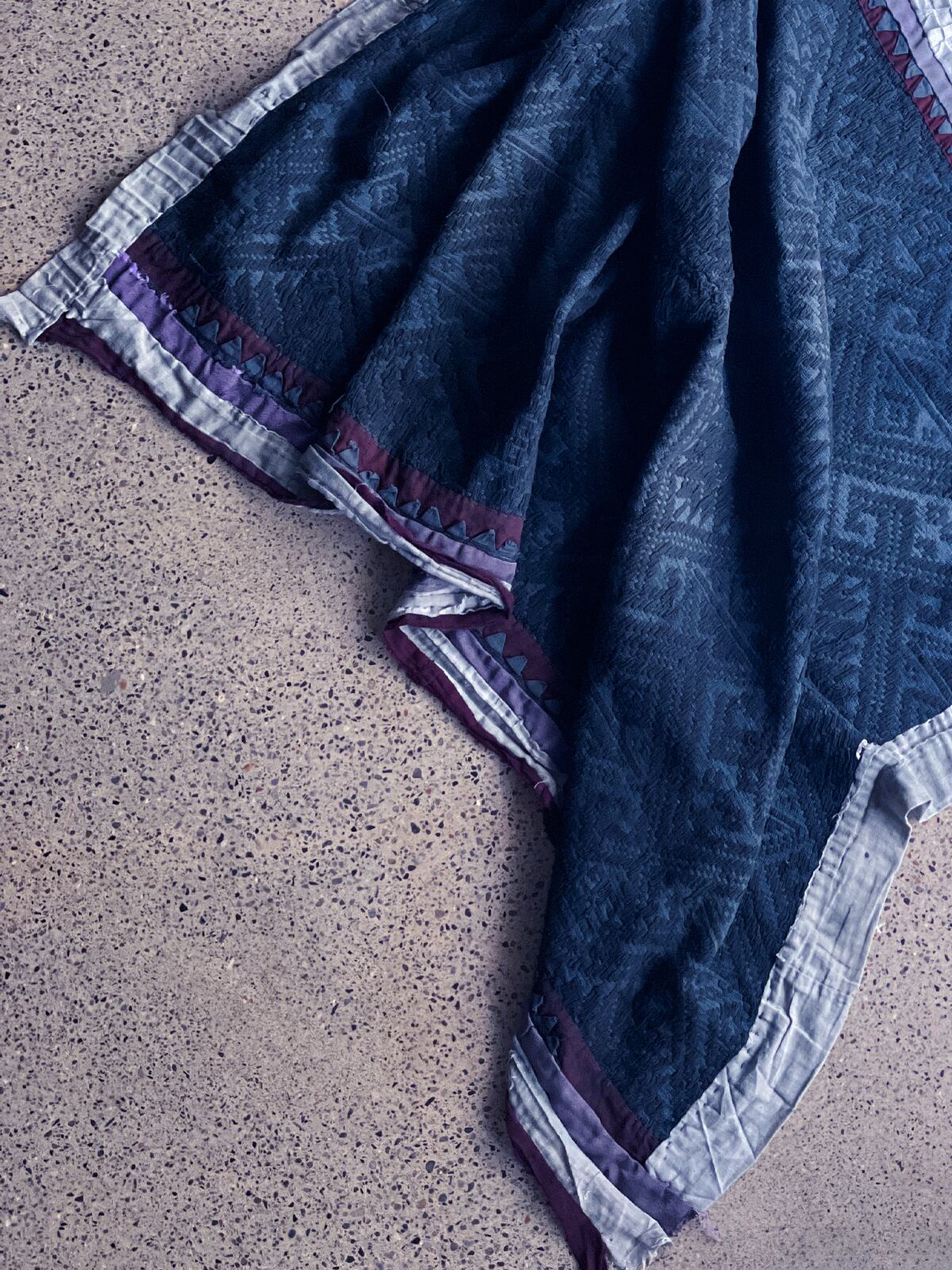 タイ北部で暮らすタイルー族のヴィンテージファブリックに黒染めを施しました。