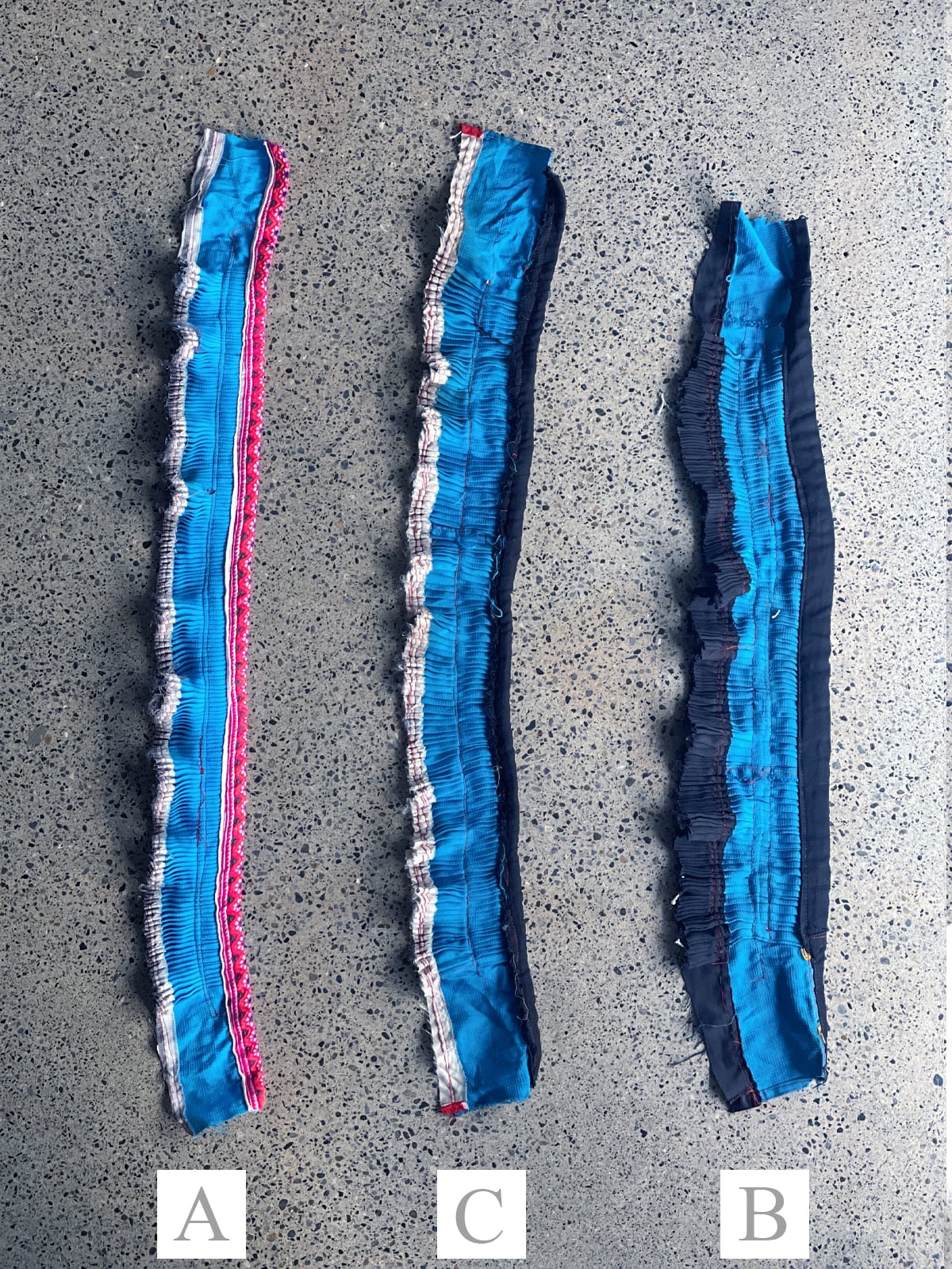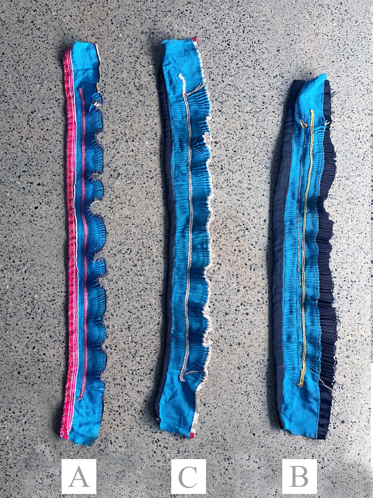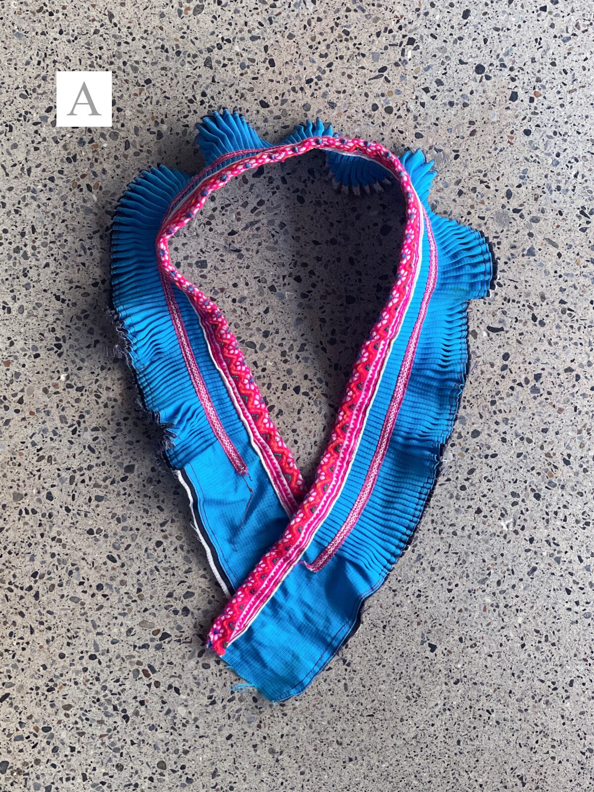 モン、ミャオ族のプリーツスカートの腰回りパーツの古布。