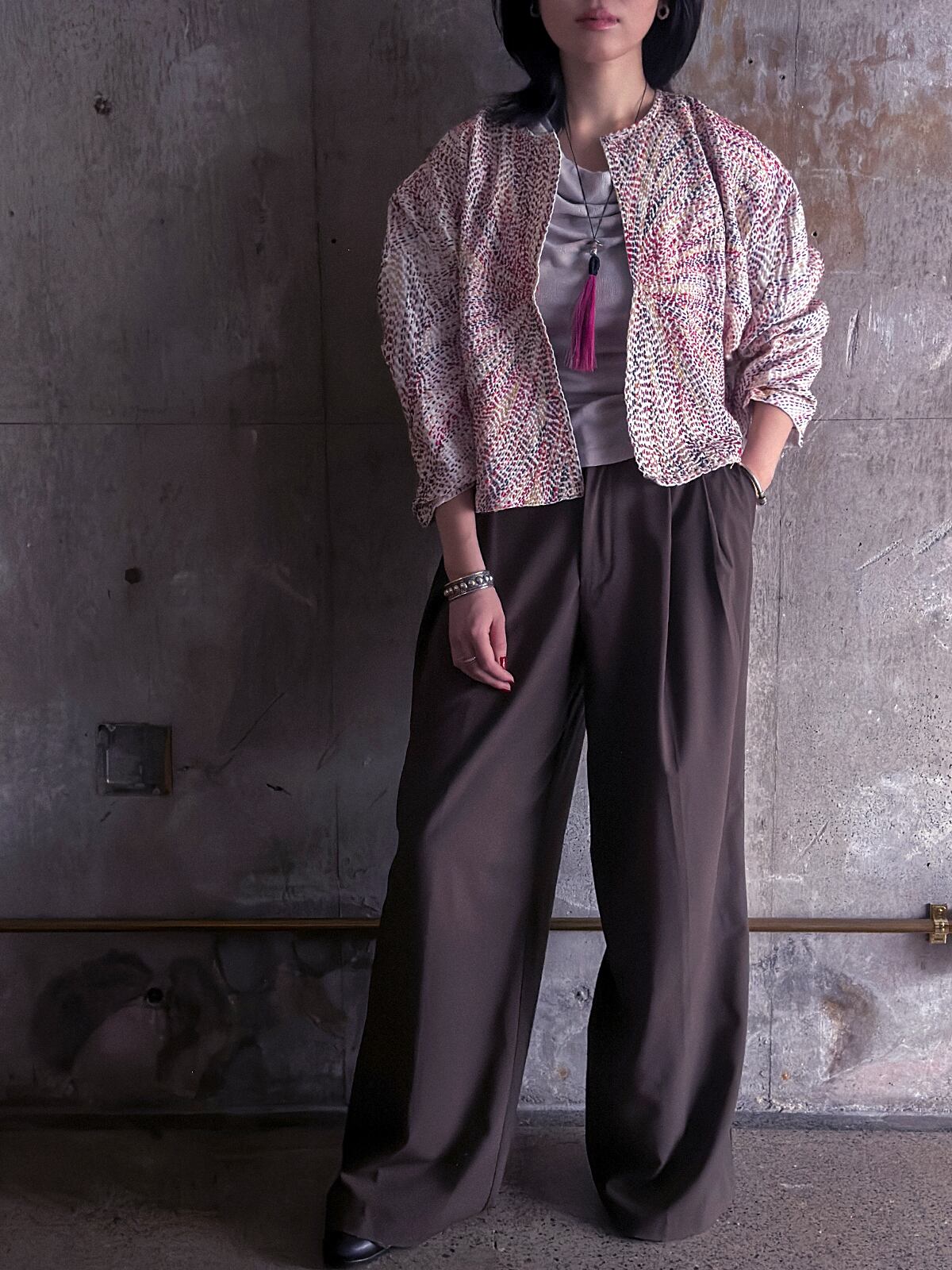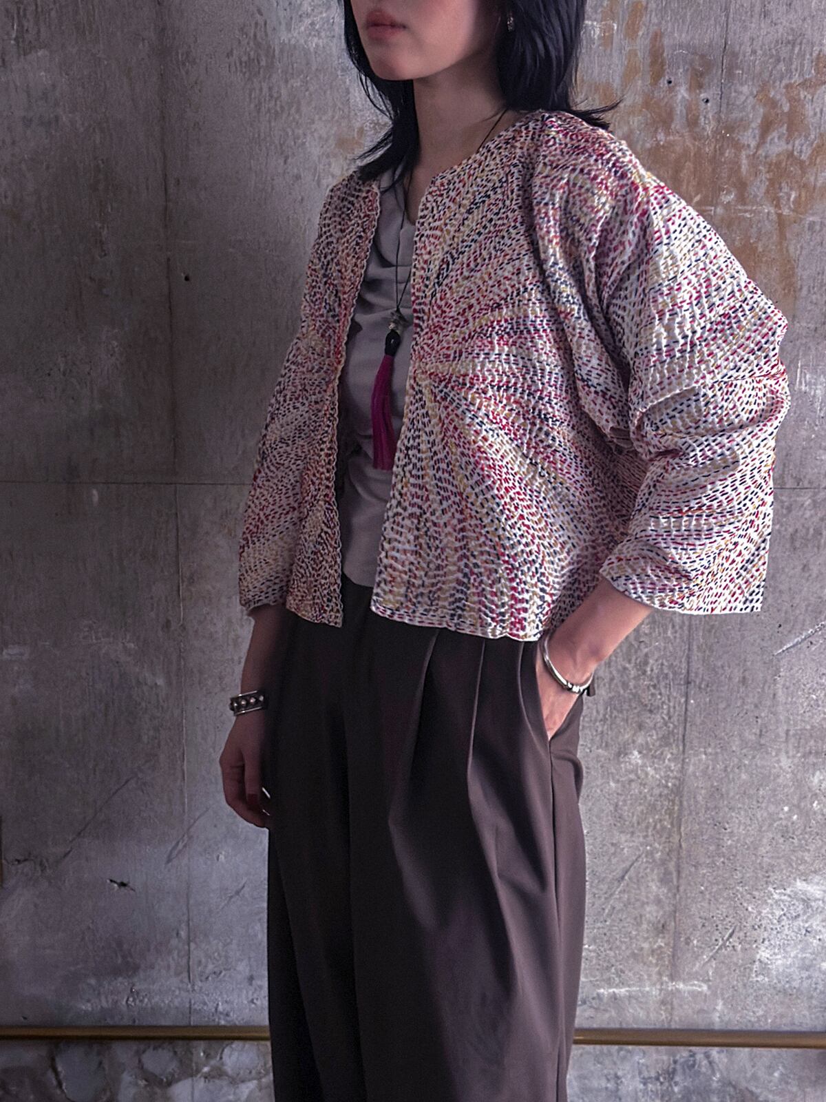 モダンなショート丈のデザインと刺し子模様。