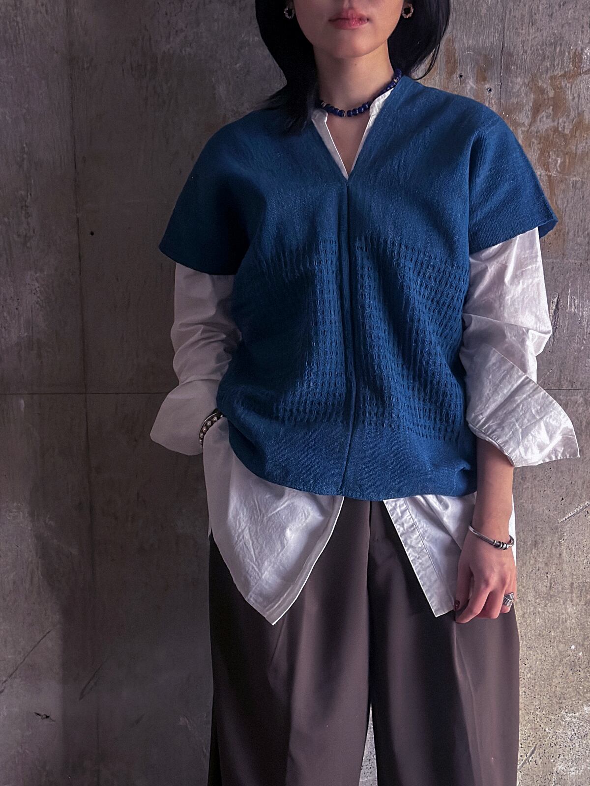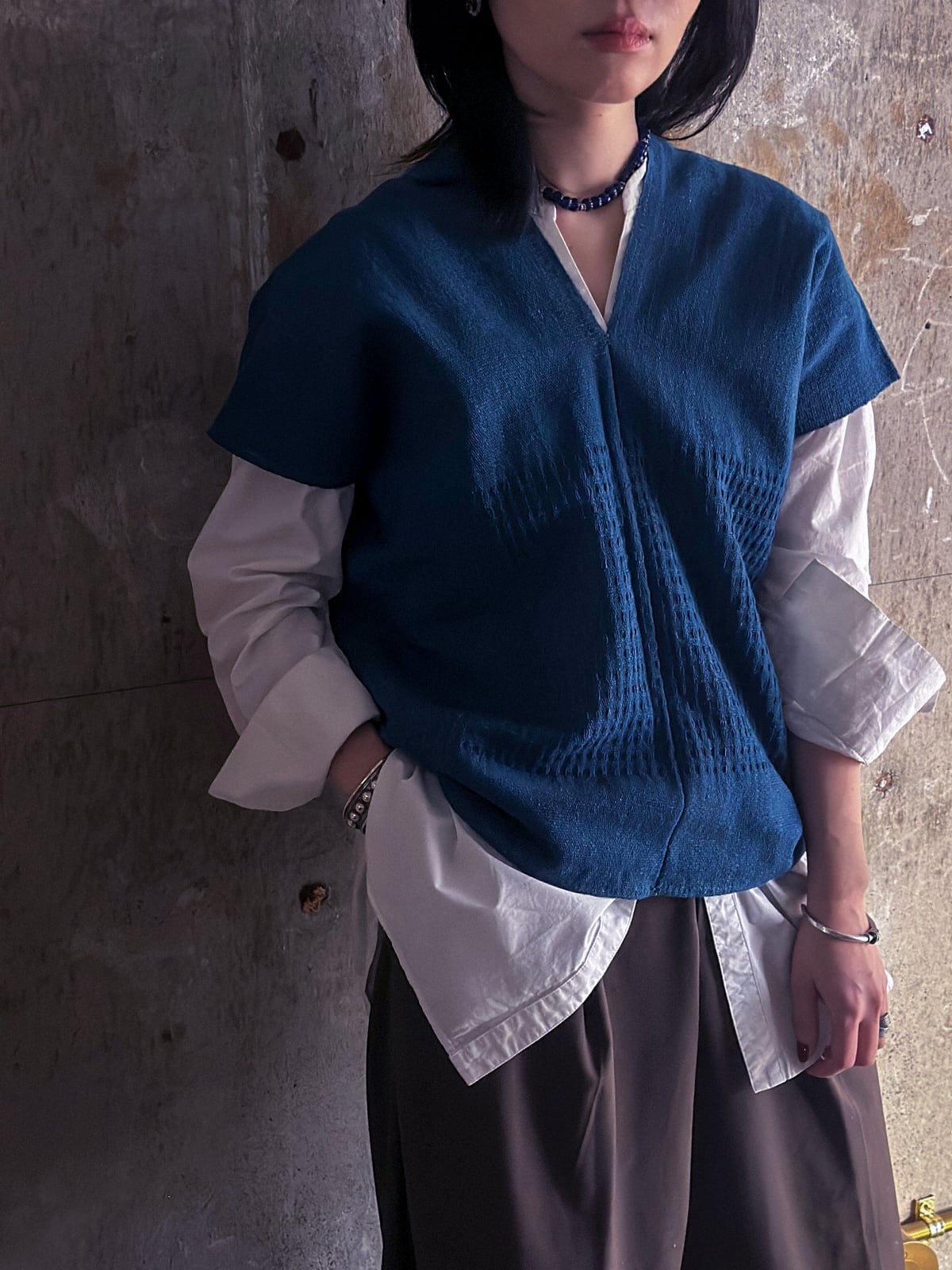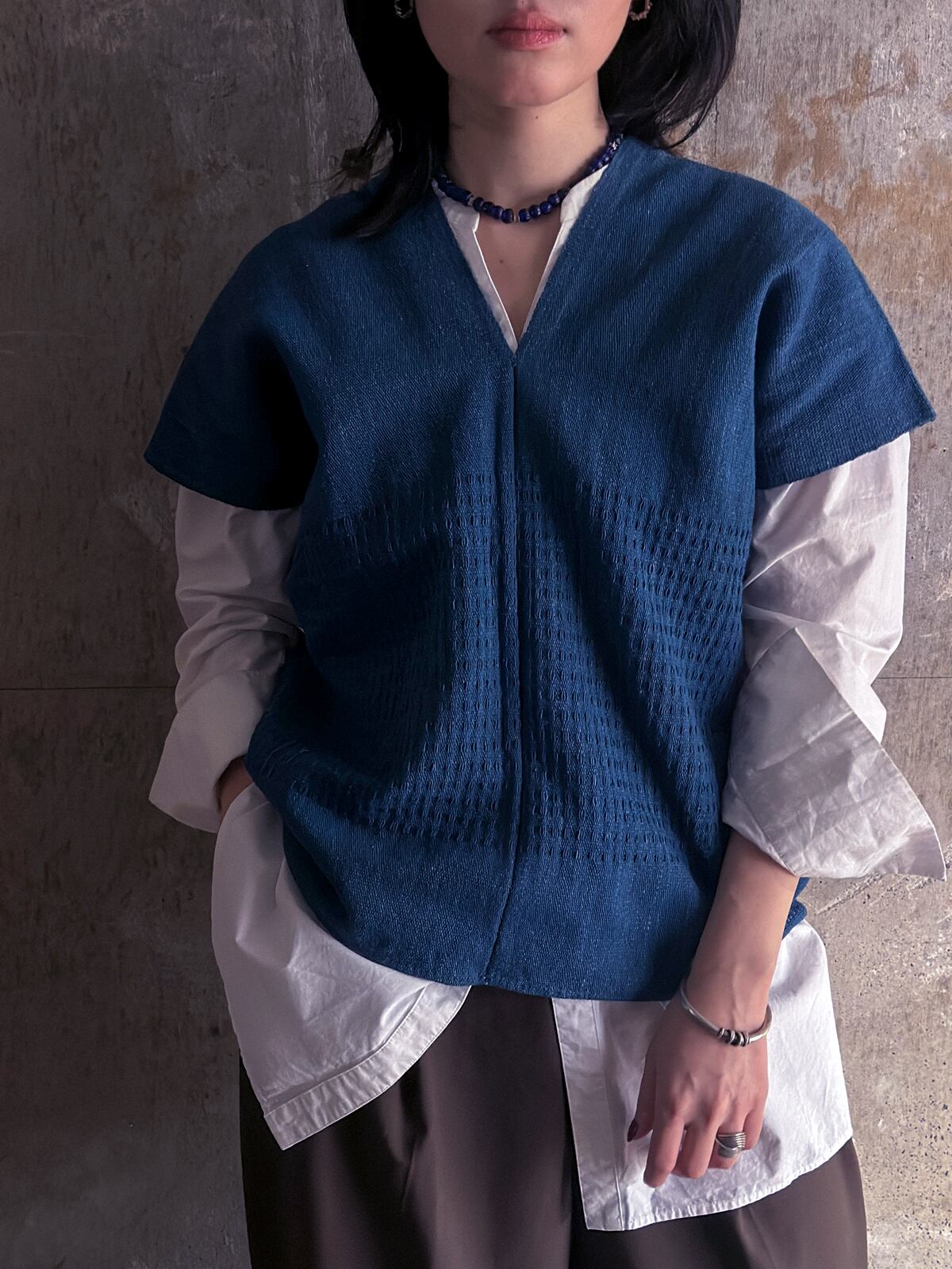 藍染で染められた、シンプルな貫頭衣です。