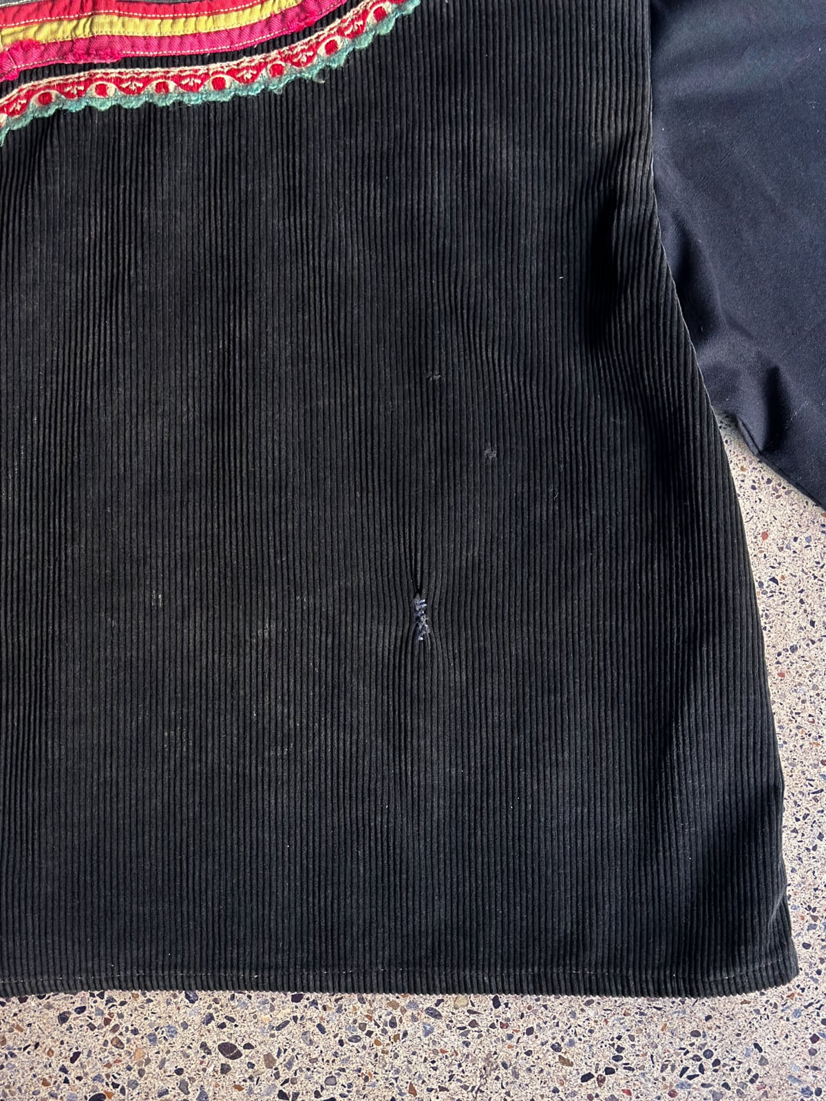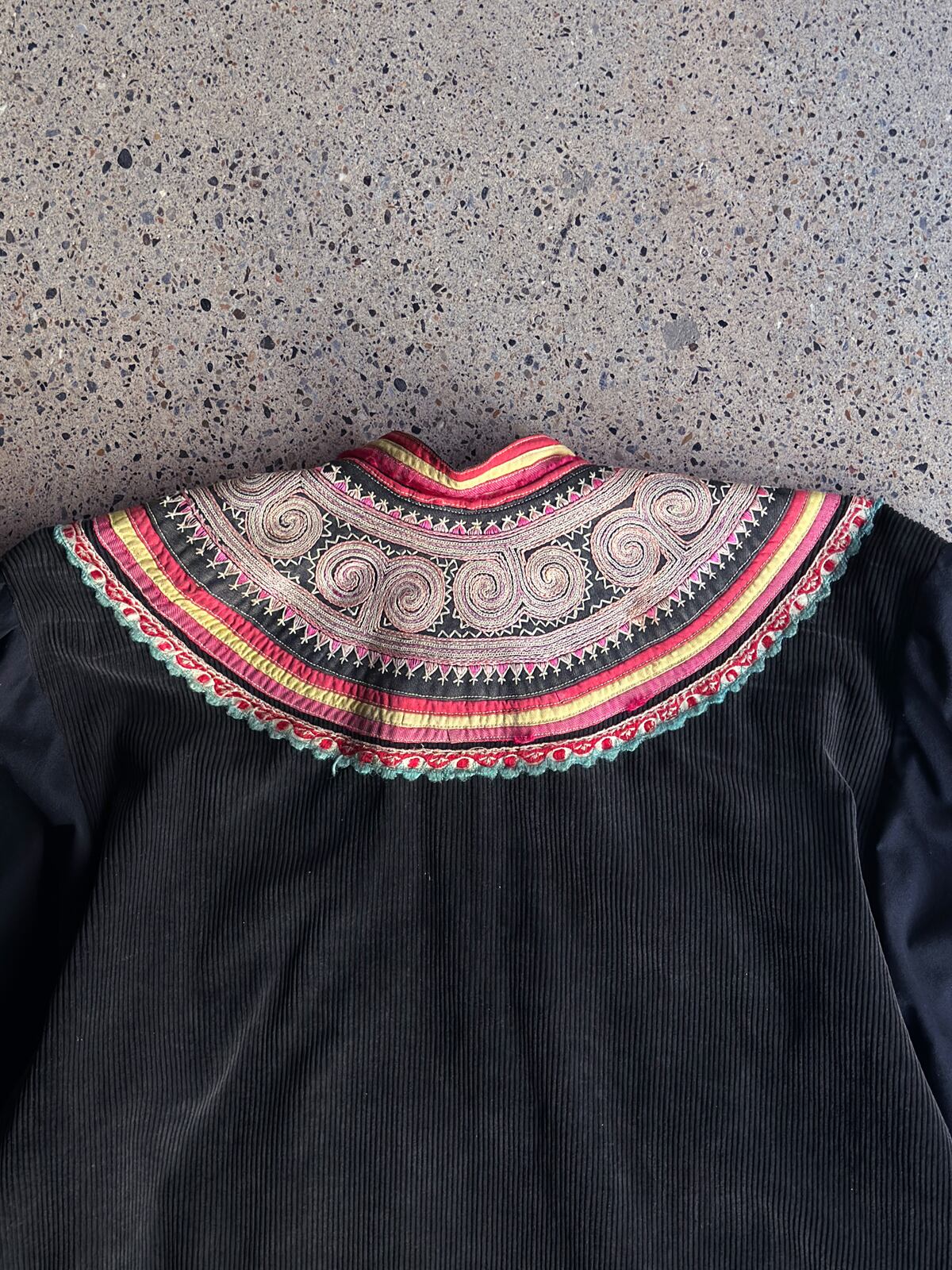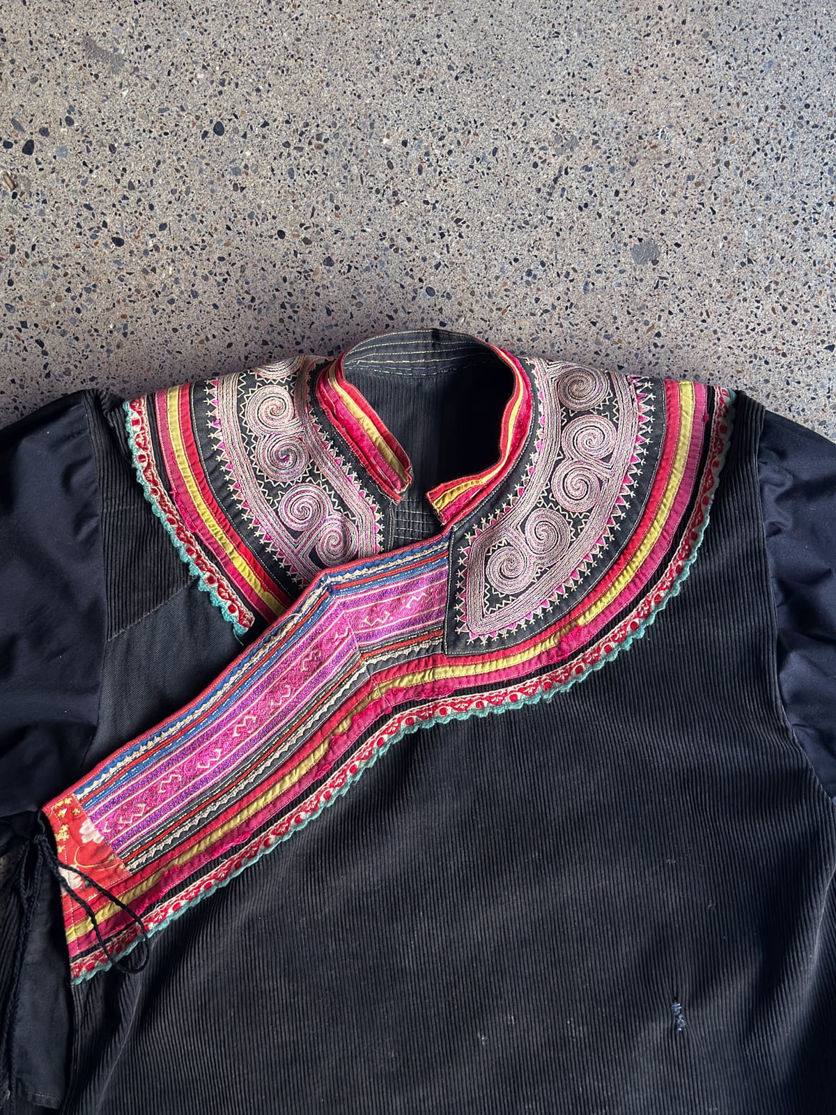 色褪せていたり、サイズ感的に着用が難しいヴィンテージの山岳民族の衣装を、黒染めで染め直し、新たなパターンに再構築するプロジェクト。