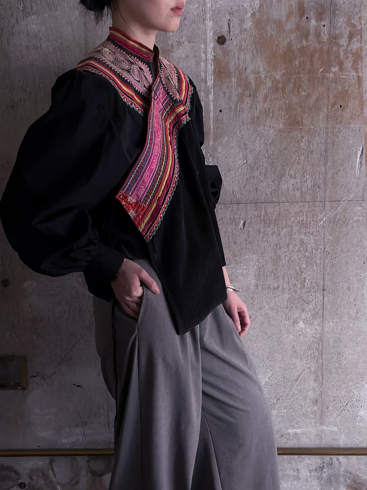 tay Original【BLACK and RE-SEW】/Vintage Miao embroidery blouse
