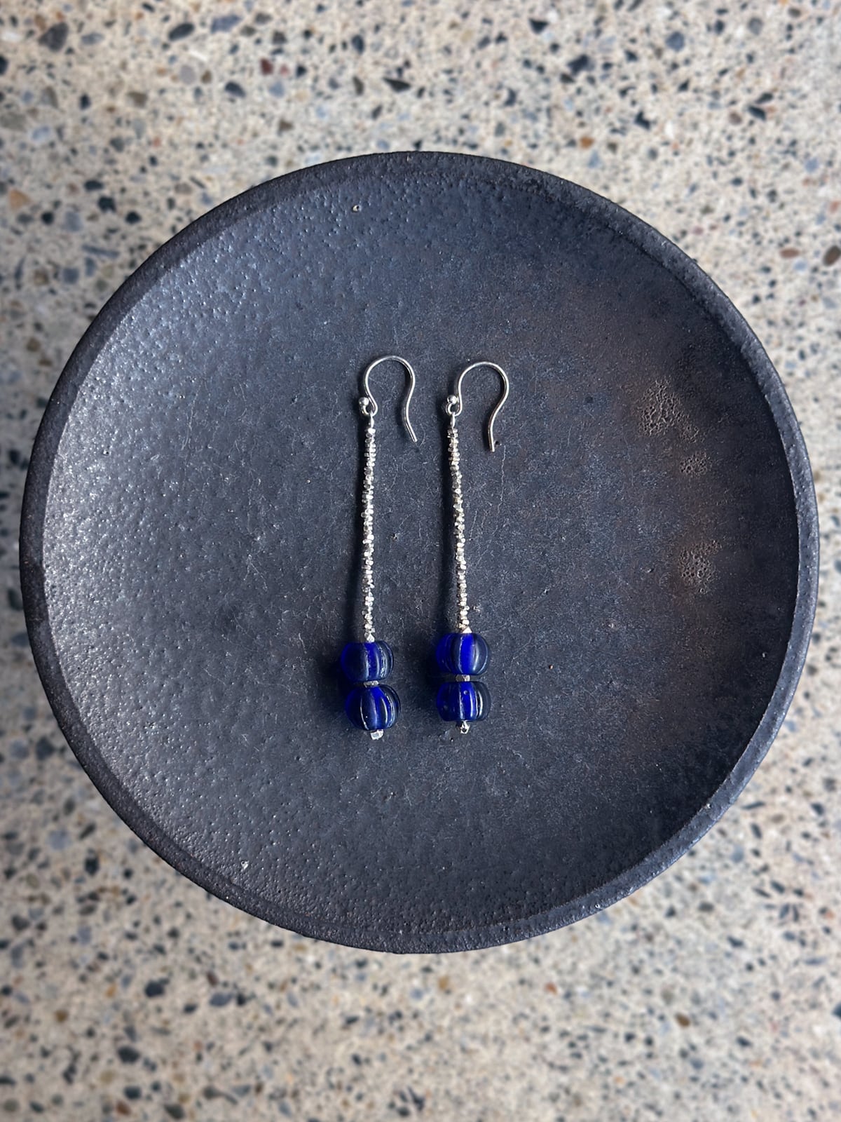 素材:ビンテージグラスビーズ、カレンシルバービーズ、ピアス金具:シルバー925