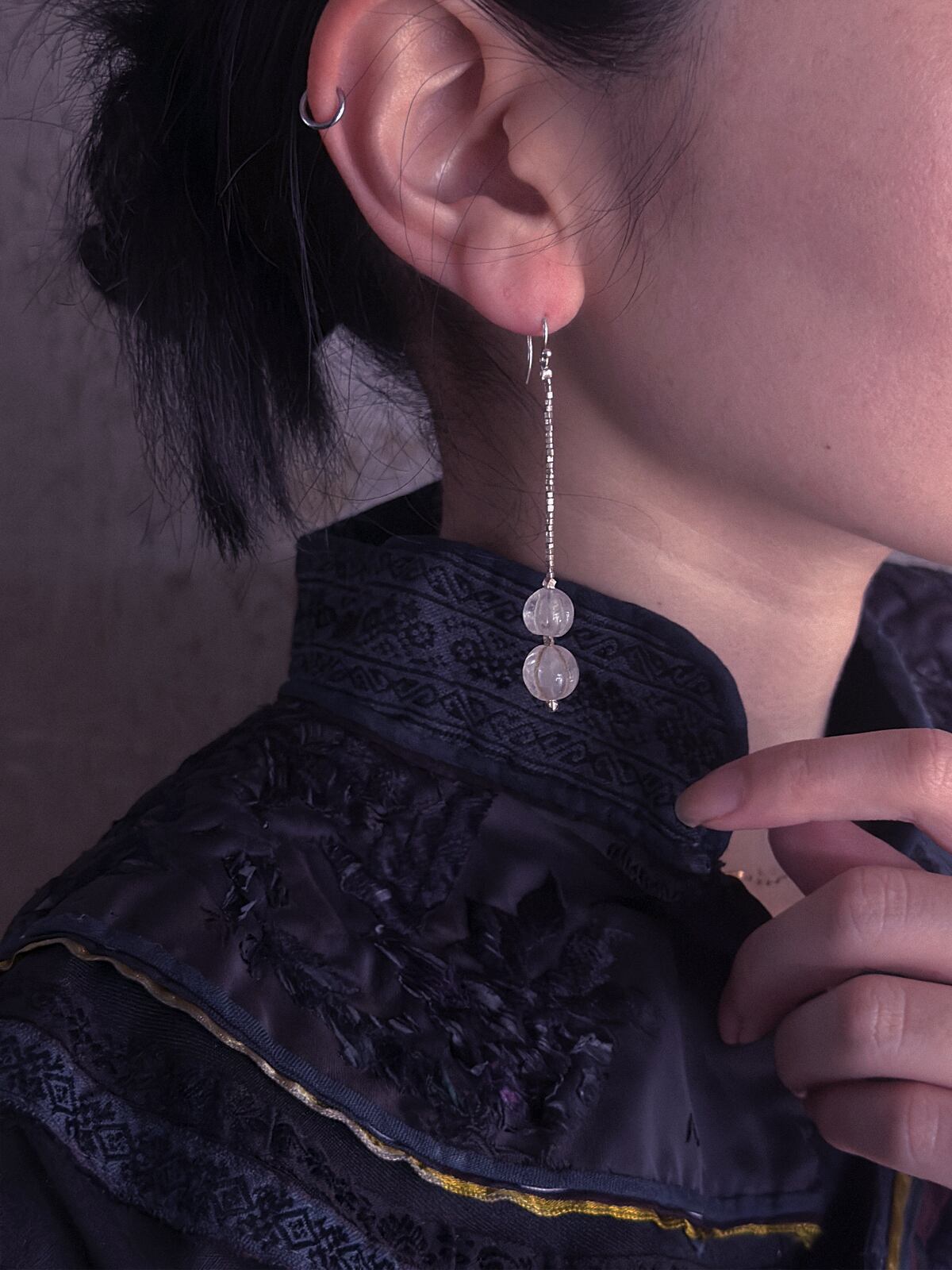 tay Original/Vintage glass beads & Karen silver beads earring (clear 2beads)