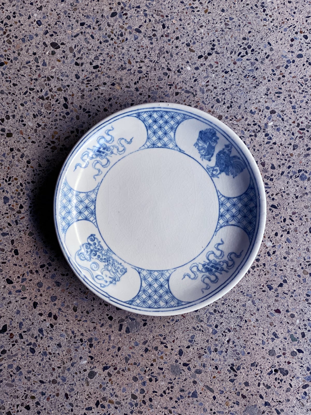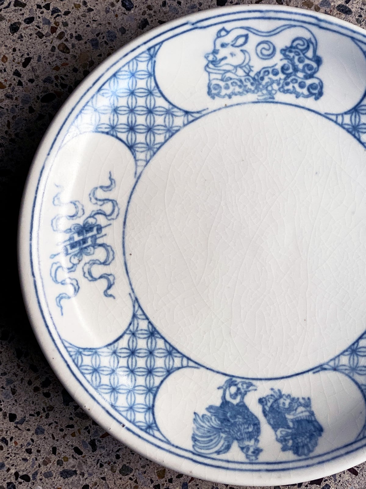 縁には鶏や豚など、幸福や豊かさを表すモチーフが描かれています。