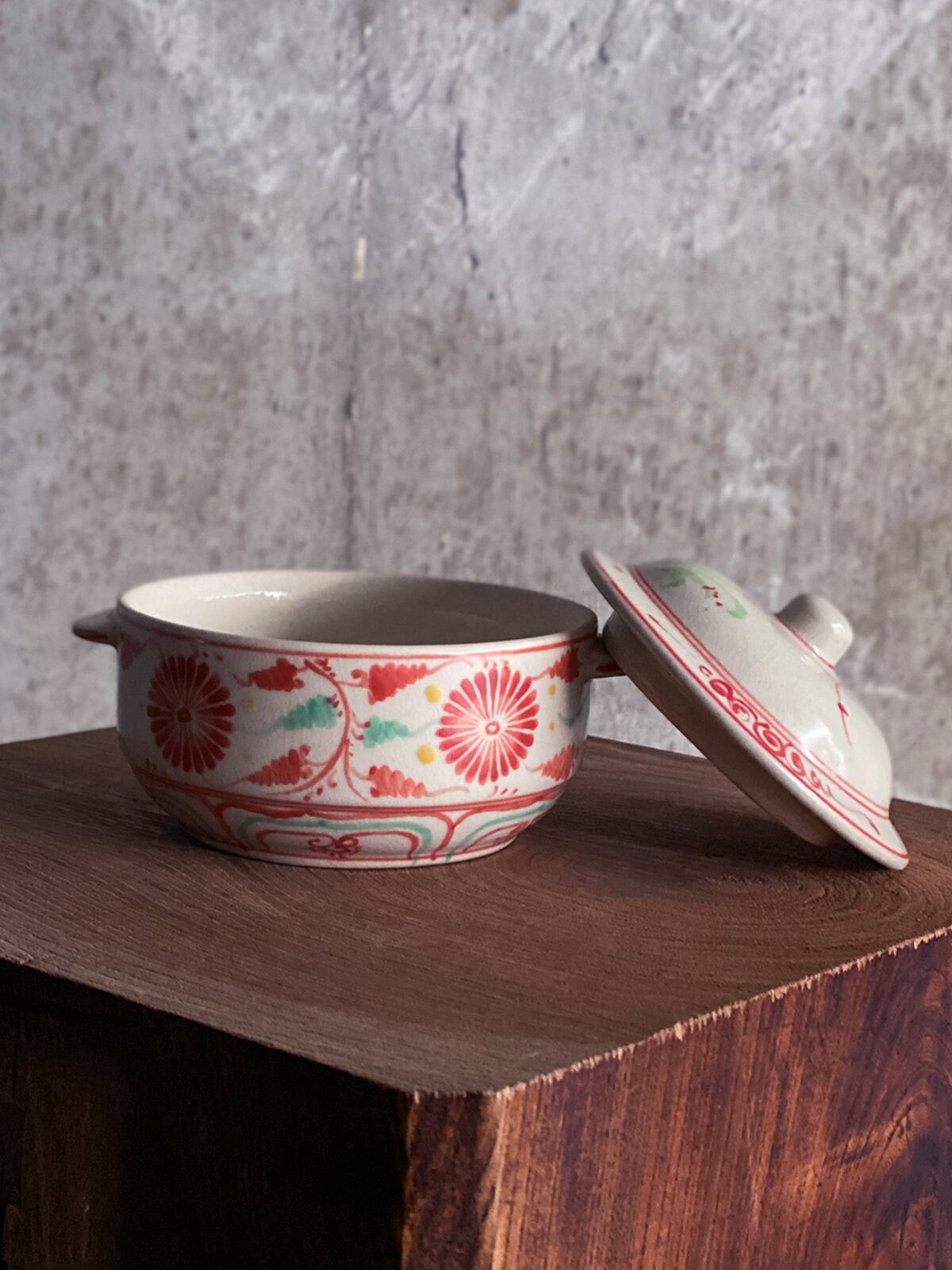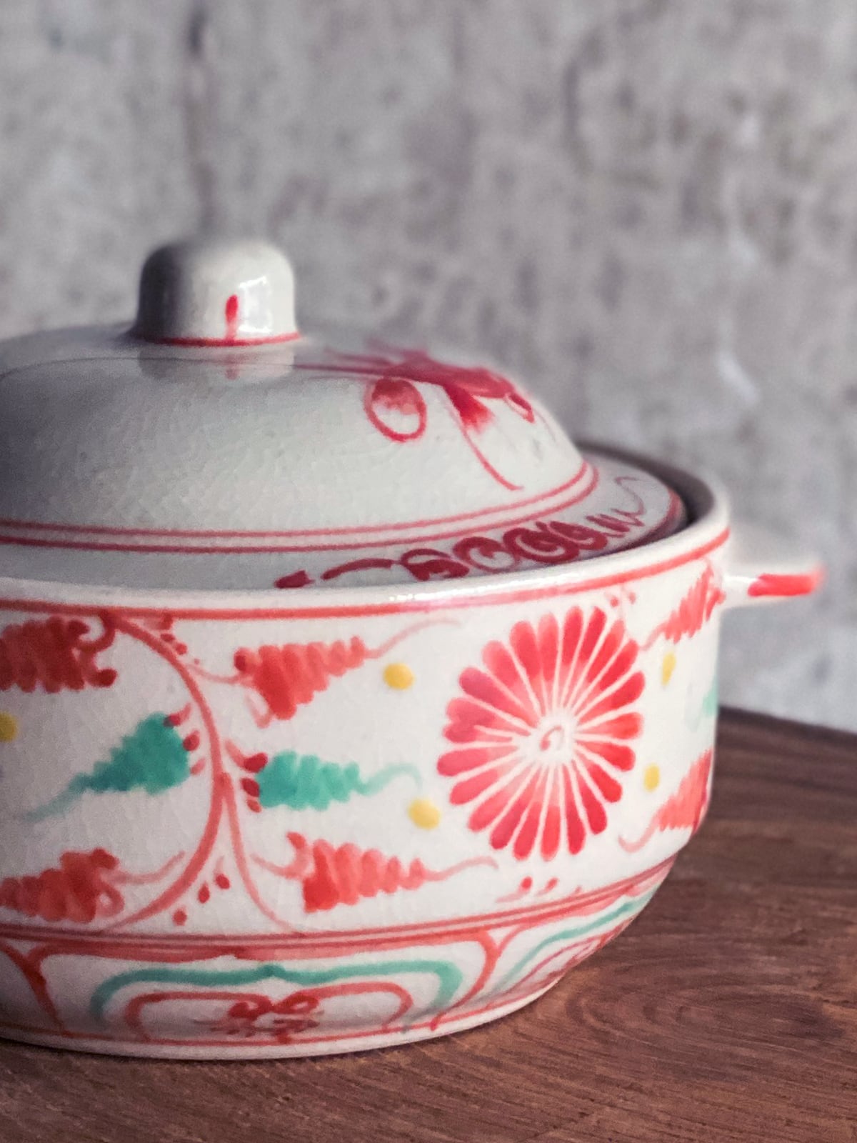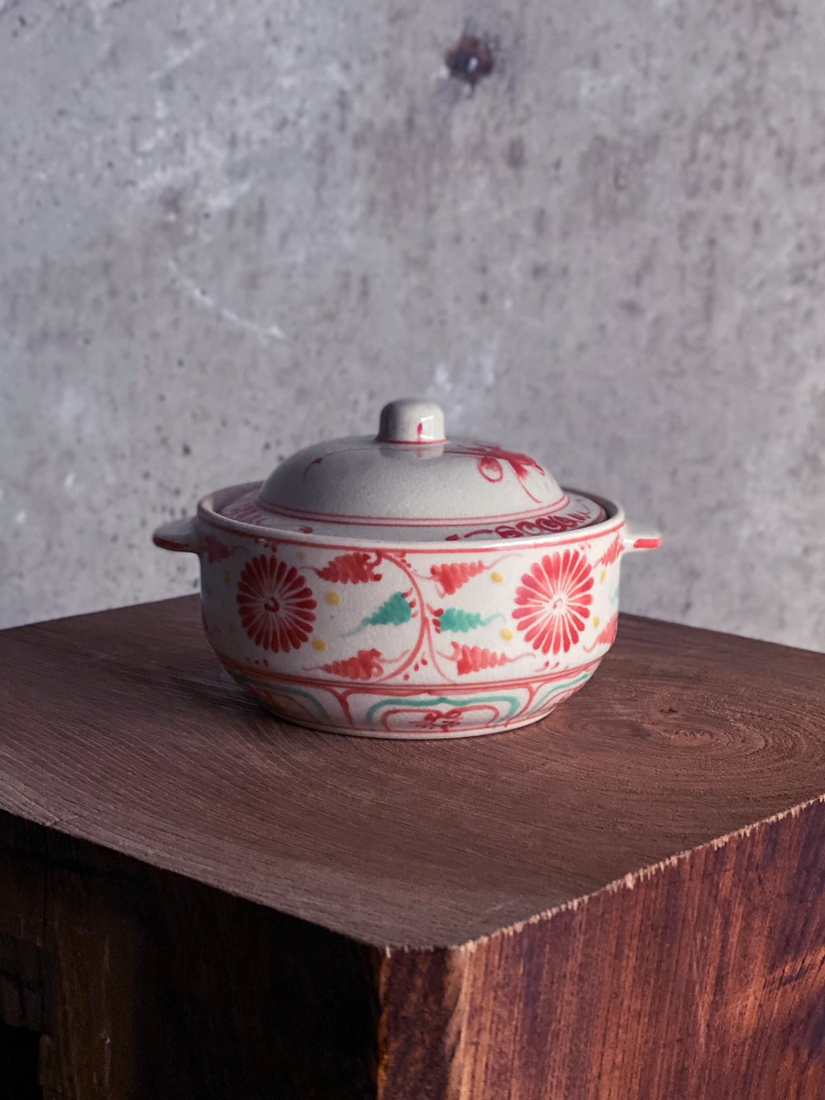 「バッチャン焼き」の蓋付きの菊の絵付けの入れ物です。
