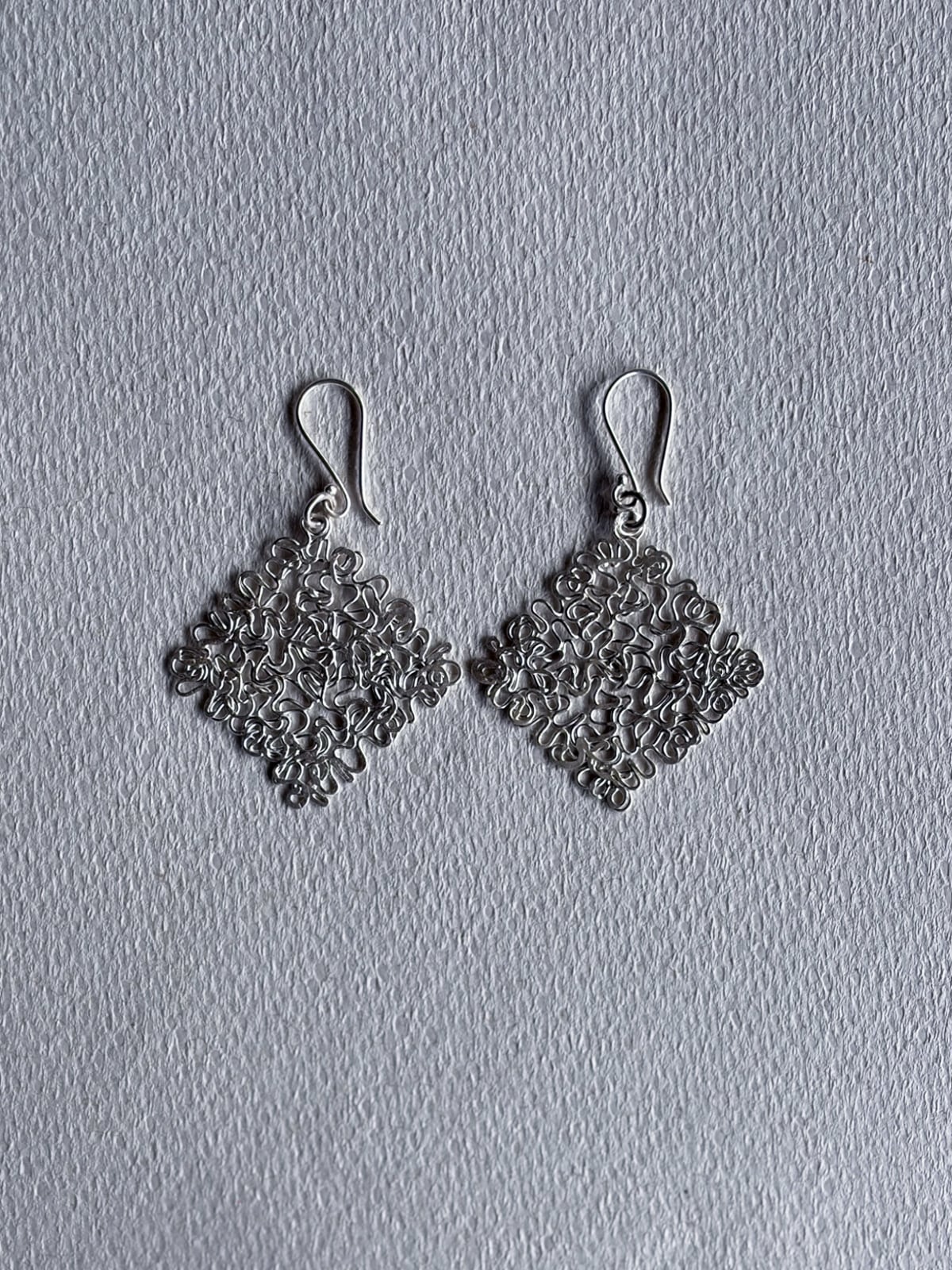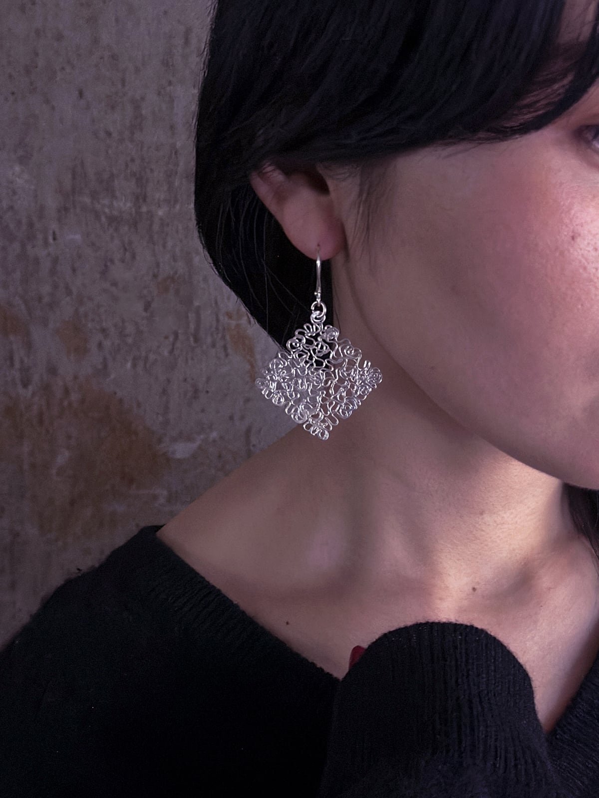 タイ北部、カレン族の職人によって一つ一つ丁寧に作られたシルバージュエリー。 彼らの美しい生活様式や山岳民族からインスパイアされたデザインが落とし込まれた、モダンで洗練されたアイテムです。シルバーの純度が高い、シルバー925を使用しています。 サイズ:縦6.3cm 横4.1cm 素材:シルバー925 ※ハンドメイドアイテムのため、1点ずつ個体差がございます。