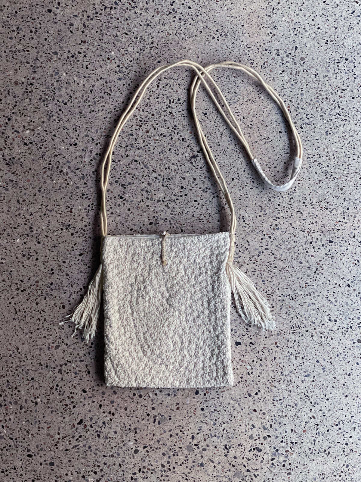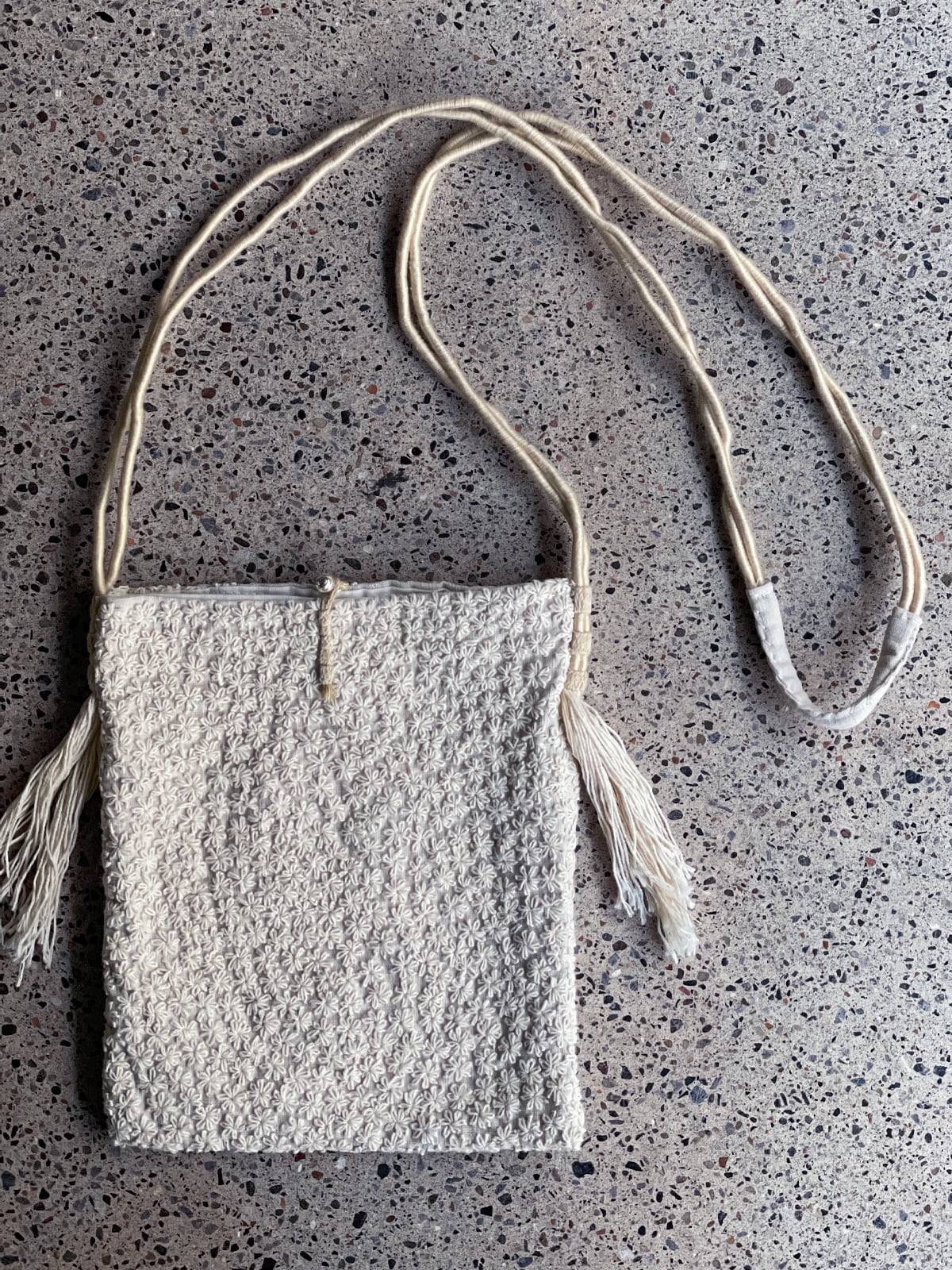 職人技を感じる、花模様の刺子が美しいショルダーバッグです。