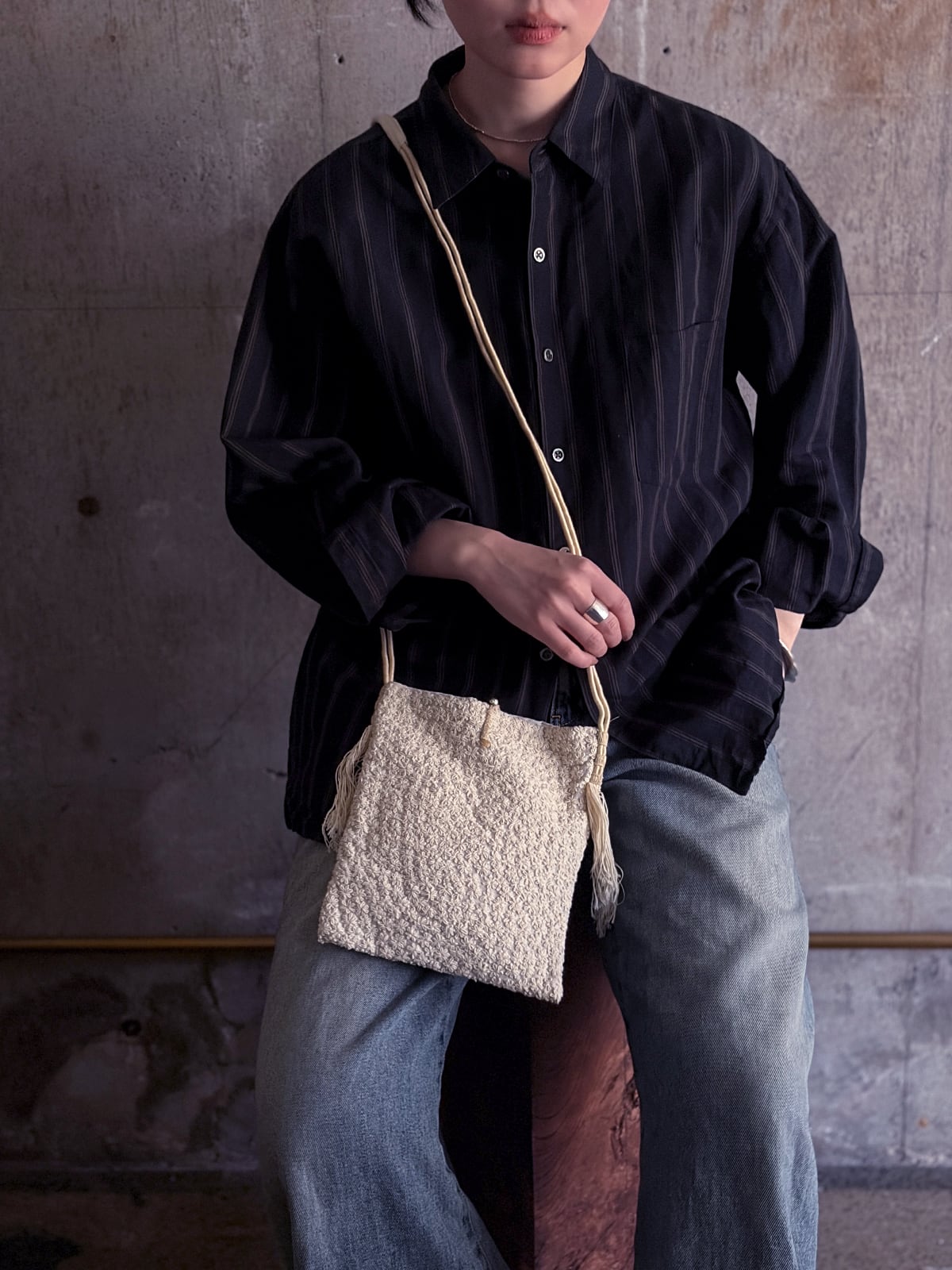 斜めがけや、紐を結んで長さ調整をしてご利用いただけます。