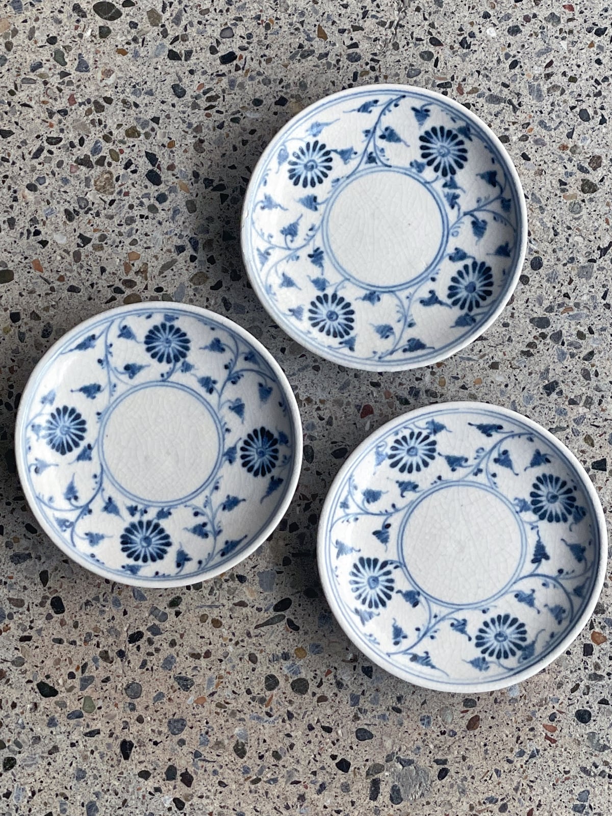 青い絵付けで、菊が描かれています。